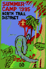 In the morning I was taken around the different activity bases by to of the programme directors, on their morning rounds: Crafts, Games, Archery, BB guns, Forester, Readyman, Swimming, Oudoorsman, Naturalist, and Papooses the Junior campers, being introduced to the staff and boys. The campsite had about a dizen individual troop areas, plus a large (50+ acre) Camporee feel, a large communal dining room, a staff headquarters, a large archery range, and shooting butts, and three or four large covered areas.
